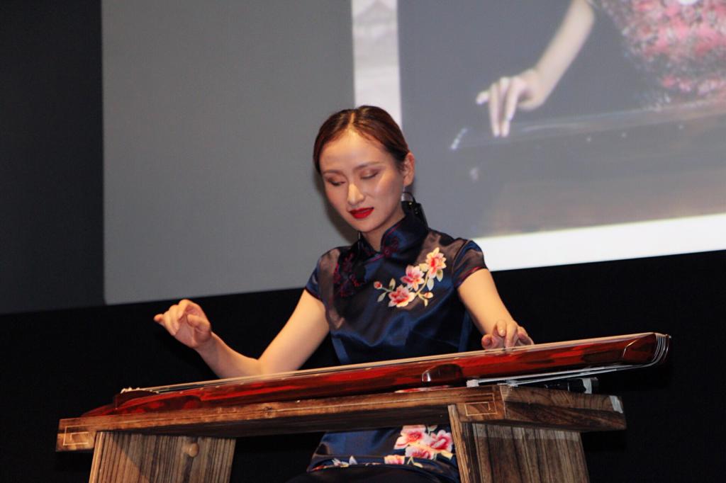 庆典晚会上,我校附属同济医院老年科副主任医师、中国京剧十大名票、著名京剧大师梅葆玖的入室弟子李健,与我校京昆艺术基地的本科生蔡筱君、博士生史彪飞合作演出京剧《贵妃醉酒》选段;体育教学部教师王静表演了功夫扇;古琴演奏家、教师倪诗韵演奏了《释谈章》和《平沙落雁》;古琴教师倪羽朦表演了琴歌《归去来辞》。圆润优美、富有韵味的京剧唱腔,如行云流水、刚柔并济的武术招式,低沉浑厚、幽雅婉转的古琴旋律,令在场意大利观众凝神屏息,会场掌声不断。佛罗伦萨大学学生管弦乐队表演了弦乐四重奏。