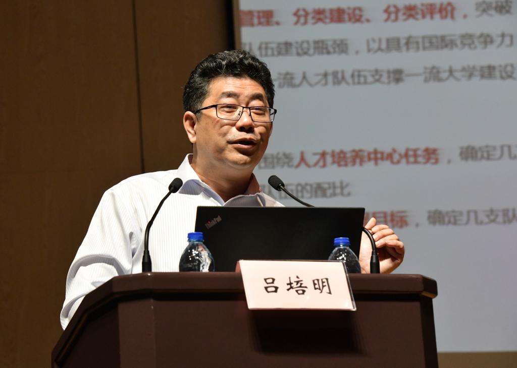 吕培明作了两个专题报告。在题为《坚持问题导向,完善体制机制,提升队伍能效——“双一流”背景下队伍建设的若干思考》的报告中,他剖析了我校当前队伍建设的现状问题,提出了加强学校人事人才工作和师资队伍建设的对策举措,以及要关注的重点。在题为《“双一流”建设与资产管理和后勤保障体系建设》的报告中,他介绍了学校土地和房屋、仪器设备、实验室等资产管理,以及学校后勤保障体系建设情况,提出了下一步重点工作。