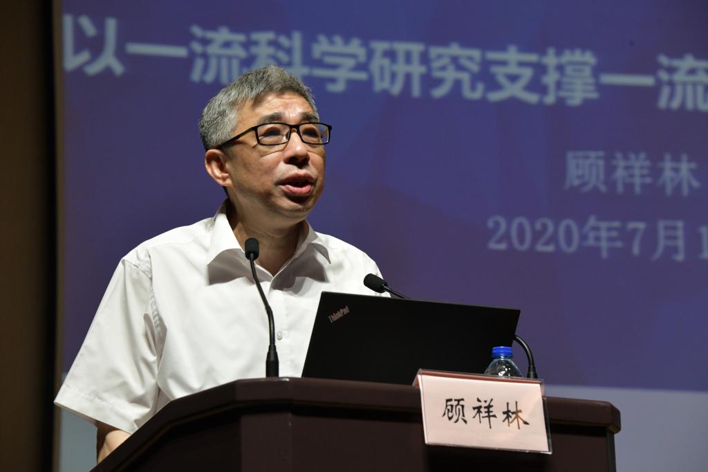 顾祥林以《以一流科学研究支撑一流大学(学科)建设》为题,从一流大学建设中科学研究的作用、一流科学研究的特征、如何做好一流科学研究三个方面作了阐述,指出了我校当前科研工作中存在的问题,提出了推进我校高水平科学研究的若干措施。