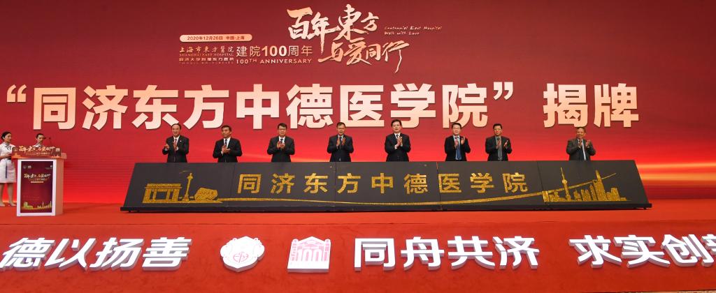 12月26日上午,同济大学附属东方医院建院100周年庆祝大会在上海国际会议中心举行。会上,浦东新区与同济大学共建、附属东方医院承建的同济东方中德医学院和依托同济大学附属东方医院建设的国家干细胞转化资源库揭牌。