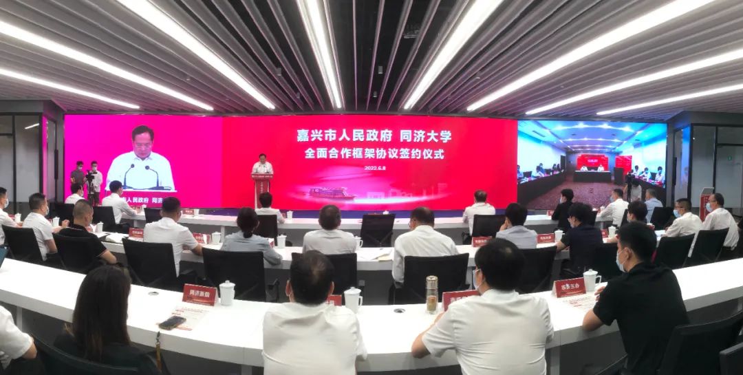 同济大学党委书记方守恩、嘉兴市委书记张兵出席“云签约”仪式并讲话,同济大学校长陈杰,副校长顾祥林、黄翔峰,嘉兴市人大常委会主任高玲慧,市政协主席陈利众,市委常委、市委宣传部部长范庆瑜,市委常委、市委组织部部长颜海荣出席,同济大学常务副校长吕培明,嘉兴市委常委、副市长齐力分别代表双方签约,嘉兴市委副书记、市委教育工作领导小组组长帅燮琅主持签约仪式。