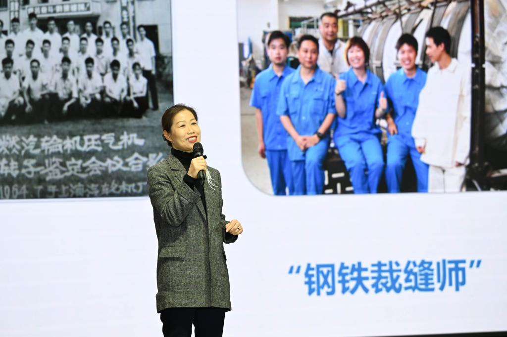 跟各种各样的金属材料打交道,研究掌握它们的特性,根据产品需求把它们用在刀刃上。全国劳动模范、上海工匠、上海电气电站设备有限公司上海汽轮机厂总锻冶师刘霞以《做一名逐梦新时代的劳动者》为题,阐释了她作为一名工程师的成长历程和不断攻克技术难关的热情。她勉励同学们:“在工作中学习,在学习中探索,在探索中前行,最终将发现熠熠生辉的自己。”