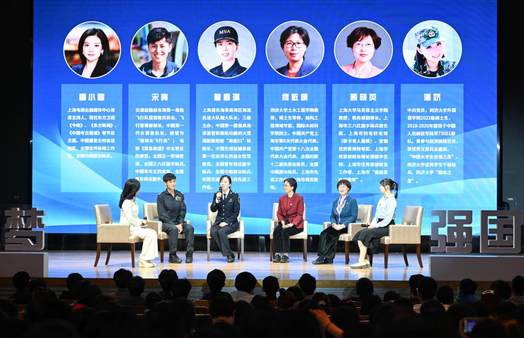 圆桌论坛环节,宋寅、詹春珮、同济大学土木工程学院教授何敏娟、上海大学马克思主义学院教授顾晓英,以及中国大学生自强之星、同济大学外国语学院2022级硕士研究生潘娇,结合各自的工作、学习及切身感悟,共同围绕弘扬劳模精神、劳动精神、工匠精神和年轻人的成长,展开了深入探讨和交流。