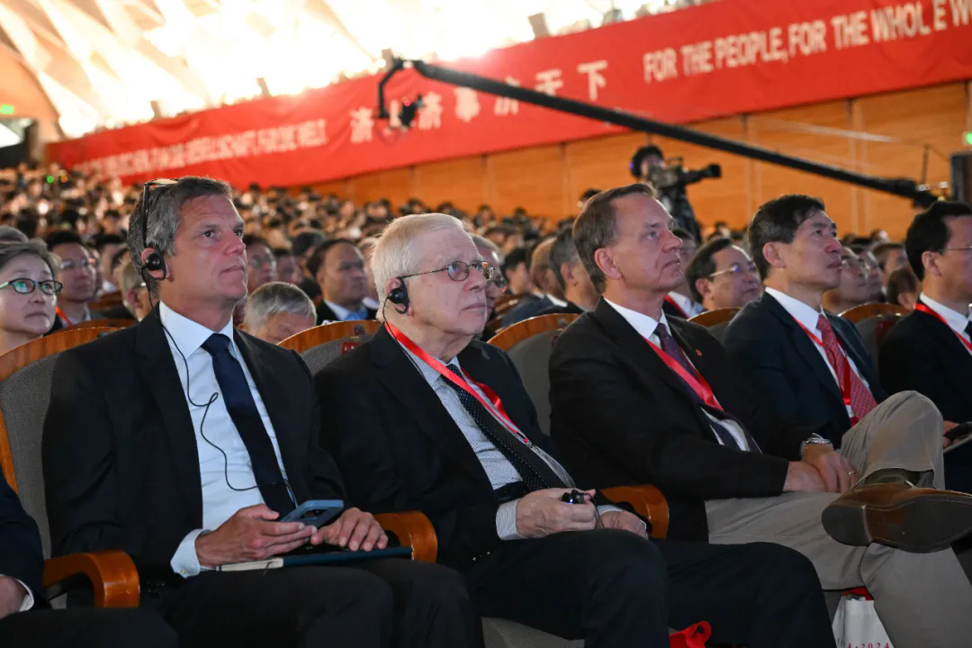 钱七虎院士、江欢成院士、欧进萍院士、何积丰院士、梁文灏院士、黄卫院士、何华武院士、赖远明院士、缪昌文院士、肖绪文院士、杜彦良院士、任辉启院士、王复明院士、陈政清院士、滕锦光院士、徐建院士、张喜刚院士、吕西林院士、李杰院士、王明洋院士、刘加平院士、朱合华院士、杜修力院士、高宗余院士、胡亚安院士、周创兵院士、刘汉龙院士、邢锋院士、Billie F. Spencer院士,Dimitrios E. Beskos院士、Shamim A. Sheikh院士,联合国副秘书长兼联合国开发计划署副署长徐浩良,第十四届全国政协经济委员会副主任、交通运输部原副部长戴东昌,中国公路学会理事长翁孟勇,中国国家铁路集团有限公司原总工程师、技术总顾问郑健,世德集团总经理李至格,维也纳工业大学校长Jens Schneider,维也纳工业大学副校长Jasmin Gründling-Riener,维也纳工业大学副校长Ute Koch,德国波鸿鲁尔大学副校长Günther Meschke,国际土工合成材料学会主席、韩国成均馆大学教授Chungsik Yoo,香港科技大学广州校区副校长吴宏伟,中南大学副校长何旭辉,大连理工大学副校长张弛,河南工业大学校长吴智深,天津理工大学校长练继建,西安工业大学校长姚尧,重庆交通大学副校长周建庭,石家庄铁道大学副校长王伟,南京工业大学副校长陆伟东,内蒙古工业大学副校长郝贠洪,天津城建大学原校长李忠献,中国人民解放军陆军工程大学原副校长方秦,校领导郑庆华、冯身洪、吕培明、吴广明、方平、娄永琪、赵宪忠、石振明、许学军、刘润,原校领导陈以一、黄鼎业、金正基、李国强、马锦明、顾祥林,优质生源基地中学校长、校友代表以及师生代表等出席。