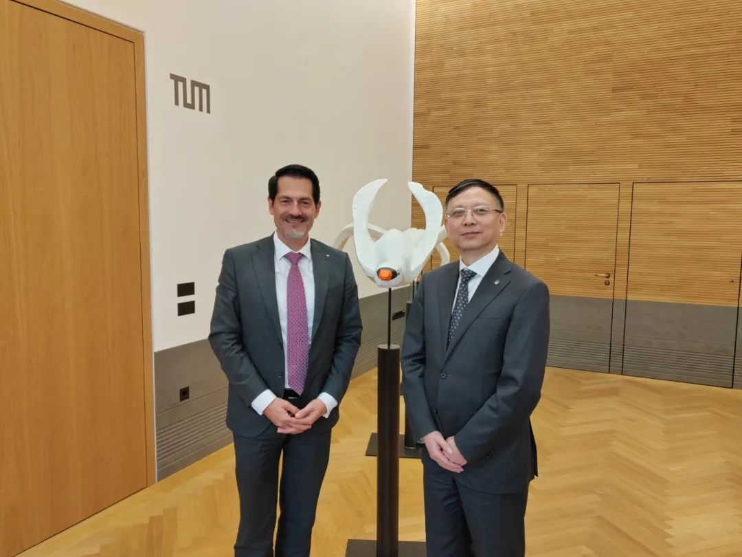 在慕尼黑工业大学,方守恩与校长霍夫曼(Thomas F. Hofmann)就以中德学院为平台继续加强机械、土木、电子与信息、汽车、医学、经济与管理等领域的合作进行了深入探讨,并就卓越工程师培养、师生互访交流等话题交换意见。随后,代表团一行访问了慕尼黑工业大学管理学院,就推动硕士双学位项目落实进行交流。