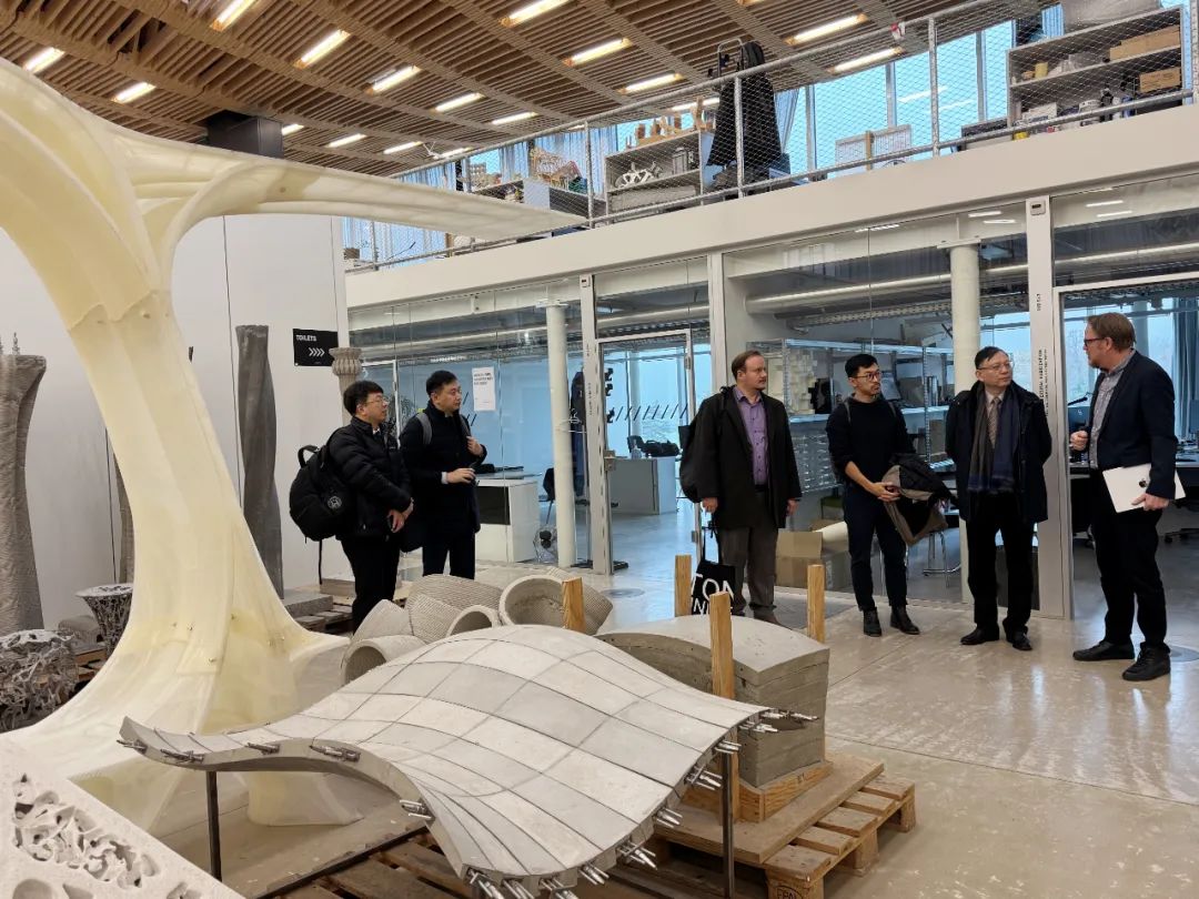 在瑞士苏黎世联邦理工学院,校长办公室国际事务主任哈根斯特伦(Anders Hagstroem)向代表团一行介绍了学校基本概况,双方就现代大学的治校理念、社会使命、战略布局等问题进行交流。随后,代表团一行参观了该校的建筑技术研究所,了解研究所在建筑智能设计与智能建造上的多项研究和实验成果,以及在该领域与同济建筑与城市规划学院的长期合作。