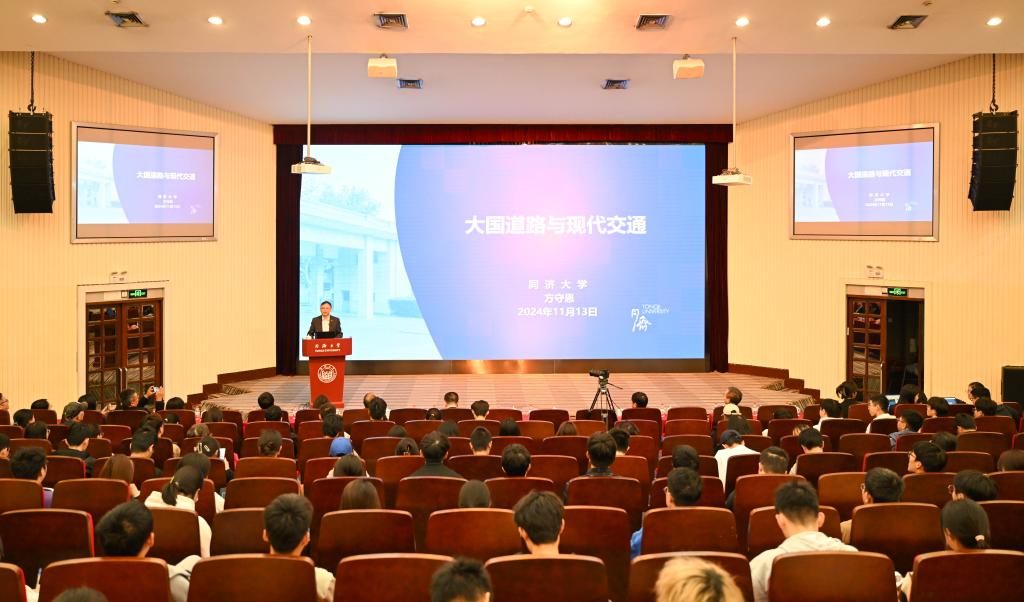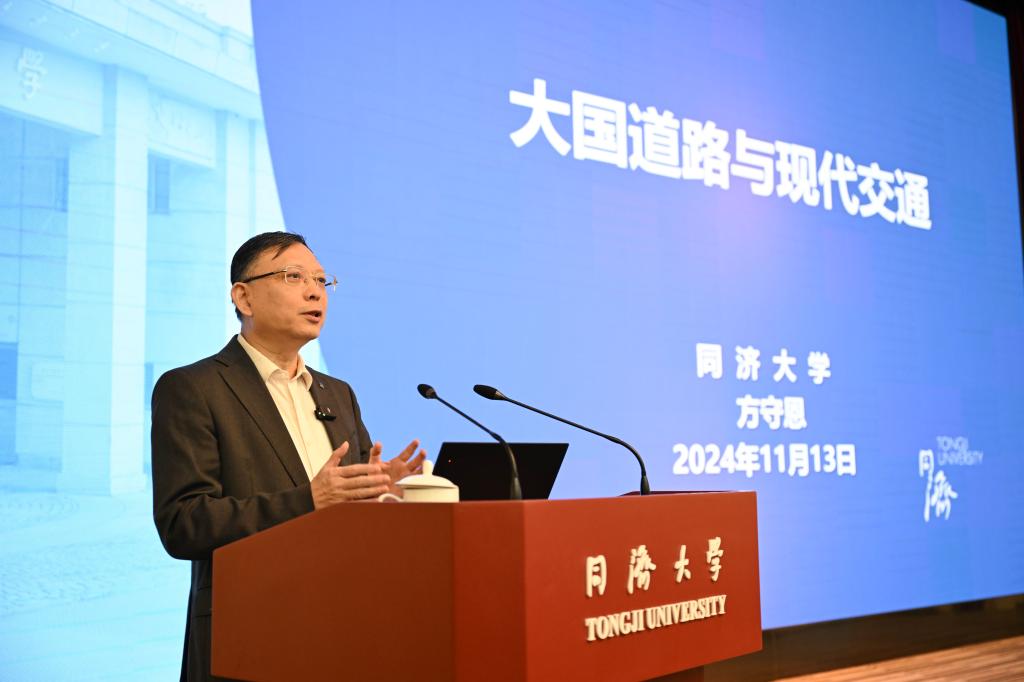 11月13日,同济大学党委书记方守恩教授以《大国道路与现代交通》为题作“新时代的中国”国情教育专题讲座,勉励师生始终心怀“国之大者”,为交通强国建设矢志奋斗。讲座由上海市委宣传部、同济大学共同主办,同济大学艺术与传媒学院承办。
