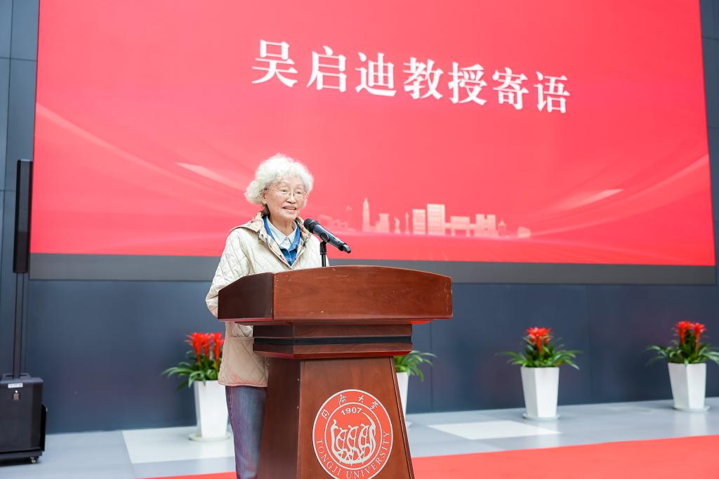 许学军对吴启迪老校长以及各位校友持续捐资注入启迪奖学金表示由衷的感谢和崇高的敬意,并对所有获奖学子表示热烈祝贺。他表示,在吴校长的持续关心和推动下,启迪奖学金的影响力和覆盖面不断扩大,激励着越来越多的优秀学子积极弘扬和传承追求真理、奋发拼搏、锐意进取、开拓创新的启迪奖学金精神。在117年砥砺奋进的办学历程中,同济为国家、民族培育了无数的优秀人才,这背后是吴启迪老校长等一代代教育家以初心如磐的责任感和信念感为党育人、为国育才,推动学校的重要办学指标和整体实力不断迈上新台阶。站在新一轮科技革命与产业变革深入发展的历史节点,希望各位获奖学子能够肩负起时代赋予的使命,心怀大我,志存高远,在“数智化、绿色化、融合化”的创新征程中勇当排头兵,以专业赋能助力“同济智慧”在各个领域闪耀光芒。