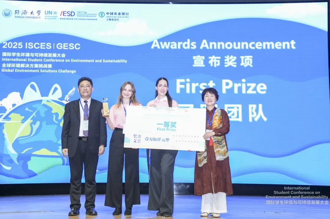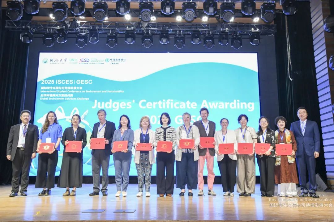 大会还举行了2025全球环境解决方案挑战赛的颁奖典礼。来自达姆施塔特工业大学、西交利物浦大学、亚利桑那州立大学、苏黎世联邦理工学院、清华大学、吉达大学、上海交通大学、俄罗斯人民友谊大学、香港科技大学等国内外高校的学生团队获奖。同济大学学生团队聚焦垃圾循环回收再利用,获得最受欢迎奖。