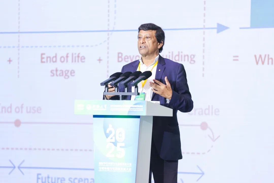在特邀报告环节,德奥·普拉萨德作了题为“Progress in Achieving Net Zero Carbon Built Environment”的报告,介绍了澳大利亚在净零排放方面的实践。他表示,我们不仅需要从源头减少碳排放,还要在整个生命周期中进行碳排放的运营管理。