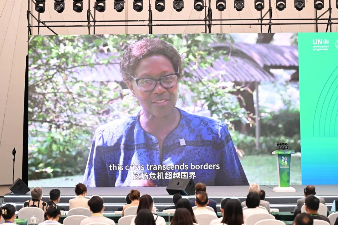 联合国环境规划署国际生态系统管理伙伴计划主任张林秀致辞表示,塑料污染是“三重行星危机”的核心议题之一,要呼吁减少塑料使用,激发全球青年提出更多富有创造性的解决方案,并推动这些方案落地应用。随后,她作了题为《运用Nexus方法应对三重行星危机》的主旨报告,提出应从能源、水资源与生态系统联动的角度出发,重塑政策制定与行动路径,为塑料污染治理提供系统化解决思路。