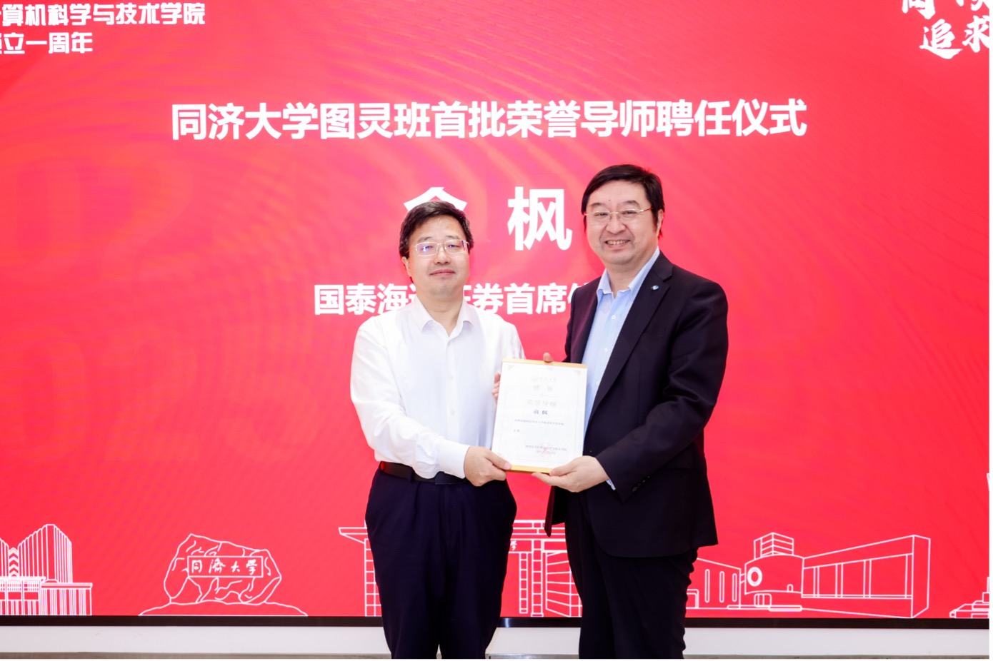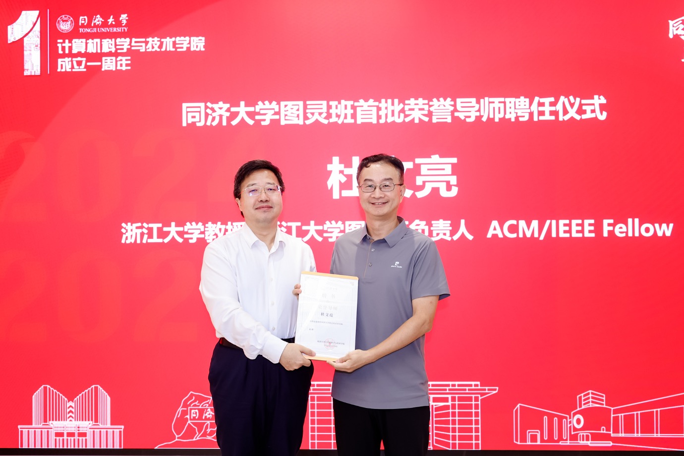 计算机科学与技术学院升级计算机基础学科拔尖基地,正式成立同济大学“图灵班”,构建起具有同济特色的“5个100%+双灵活”拔尖创新人才培养模式。为强化育人支撑,学院首批聘请16位知名专家担任同济大学“图灵班”荣誉导师,包括两院院士4位、ACM/IEEE Fellow 8位。赵宪忠为到会导师颁发同济大学“图灵班”荣誉导师聘书。