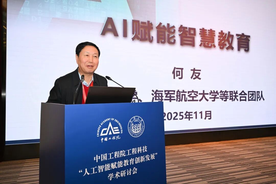 何友作了题为《AI赋能智慧教育》的报告。他表示,AI赋能教育不仅仅局限于技术层面的应用,更代表着一种教育理念和教育模式的革新,从以教师为中心的线性标准教学转变为以学习者为中心的智能精准教学。由大模型驱动的新兴应用正在成为前沿范式,多模态教学体、边缘与在地智能、教育公平与普惠等将成为AI赋能教育的未来发展趋势。