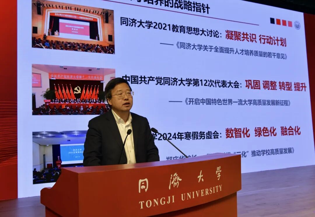 郑庆华表示,教育强国,同济当为。我们要回望育人初心,夯实立德树人根本任务,坚持守正创新,系统构建人才培养新体系。要聚焦“学术创新人才、卓越工程人才、复合交叉人才”三类人才培养,抓实“学科专业优化调整、AI赋能内涵转型、产教融合协同育人”三个关键任务,推进“人才培养模式从2+1+X向2+X+Y转变、教学实验资源从分散向集中转变、教学质量管控从质量保障向质量文化转变”三个转变,努力实现“突破院系化、专业制驱动的传统培养路径依赖,突破大一统培养方案课程体系的教学管理模式,突破分数主导、学分制人才培养成效评价模式”三个重要突破,全面提高人才自主培养质量。