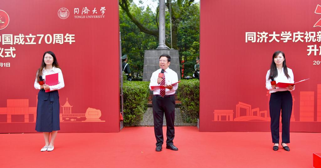 “我与共和国共同走过70年,我们把对共和国的赤诚书写在三尺讲台。”“我与改革开放共同成长,心怀家国,勇攀科技高峰。”“我与新时代共同奋进,同济青年要把时代的使命和责任扛在肩上。”马克思主义学院李占才教授,青年教师代表、测绘与地理信息学院谢欢教授,学生代表、建筑与城市规划学院研究生何睿同学共同发表“国旗下的演讲”,抒发了老中青三代同济人赤诚的爱国报国情怀。
