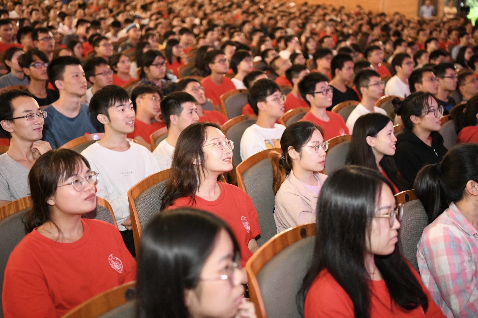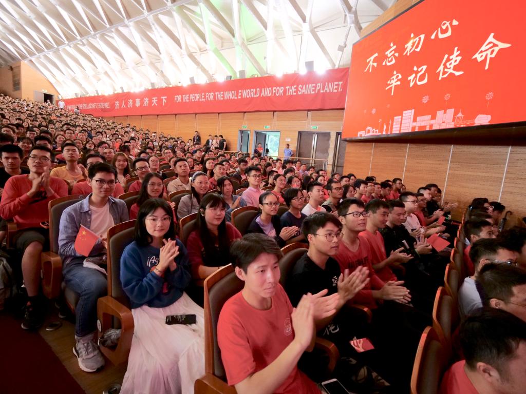 当天,三千人大礼堂座无虚席,秩序井然。聆听着总书记铿锵有力的话语,观赏着屏幕上阅兵式和群众游行一幕幕盛大震撼的画面,大礼堂内一次次自发响起雷鸣般的掌声,不少师生激动得热泪盈眶。