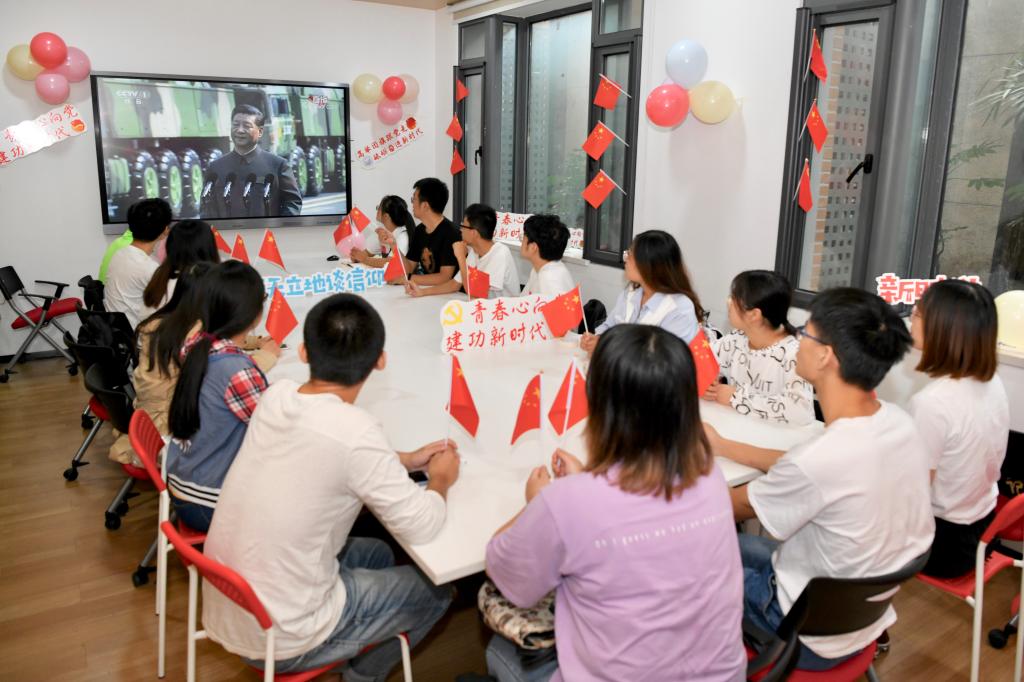 在学生社区活动室、党建中心,在各学院、各大楼的报告厅、教室、实验室,在老年活动室里,在校园大屏幕前,同济人踊跃收看直播盛况。他们挥舞着手中的国旗,热烈的掌声、欢呼声此起彼伏。还有不少正在海外交流的同济师生不顾时差,一直守候在电脑屏幕前,见证这载入史册的历史性时刻。