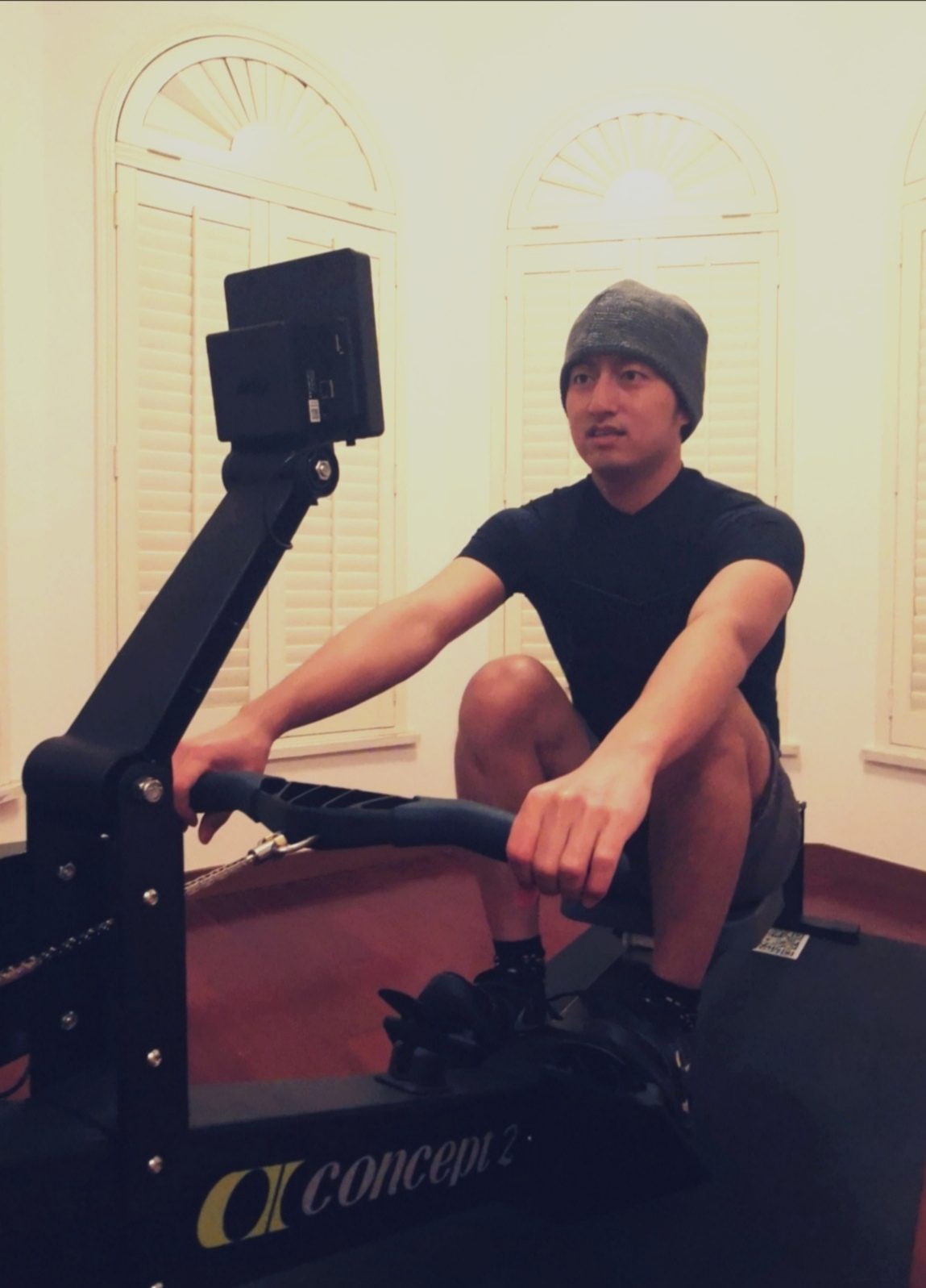 “最难熬的是暑训。”队员们都这么说。2019年8月8日早上5:30,迎着朝霞,张轩铭与队友们开始了暑期第一天集训。先是准备活动加水上20公里,虽然是一天当中温度较低的清晨,队员们依旧汗如雨下。不同以往的是这次的水上训练转移到了京杭大运河,航运河道上游轮、货船不时掀浪而过,赛艇犹如水中落叶难以掌控。头顶烈日划个来回,1000毫升饮用水是每名队员的必备品,汗水浸透训练服,整个人像刚从水里捞出来的一样。“防晒霜必须涂3层,不是怕晒黑,而是防晒伤,因为就算涂再多,一身身的汗一出也就冲淡了。”队员们深有体会地说。遇到室外气温过高,就改成室内长距离划,那也是半程马拉松起步。30分钟划船器三组或40分钟两组、短时间间隔多次500米冲刺……一天三段训练下来,水上里程达60公里,桨旋转、拉水,手掌早已水泡遍布。在接下来的大半个月的高强度集训里,队员们全然不顾身体的伤痛、烈日的炙烤,克服一个个困难,忘我地投入训练,从未言弃。