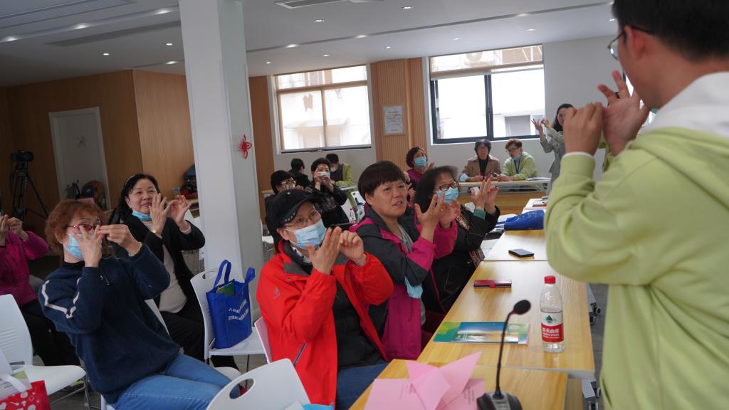 当天,在建设项目启动仪式结束后,同济大学老龄语言与看护研究中心的大学生志愿者还为四平路街道的老年人开展了认知障碍方面的科普宣传、认知评估和认知干预。