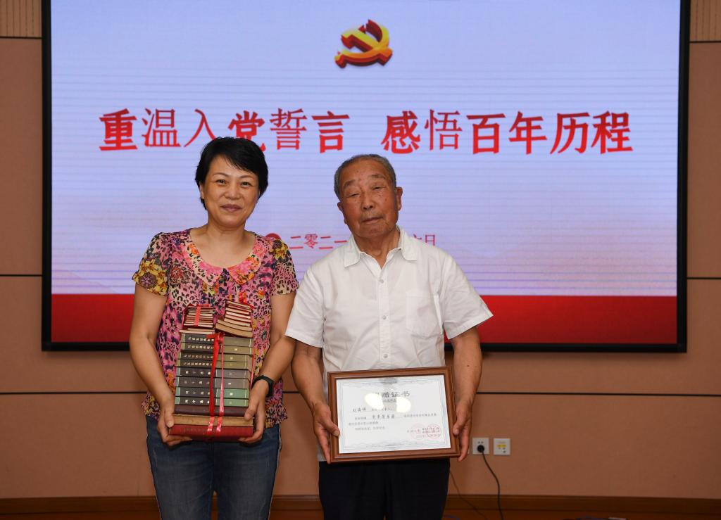 随后,土木工程学院地下系退休党支部向李玉兰、刘海祥两位老同志赠送了“七一”纪念品。
