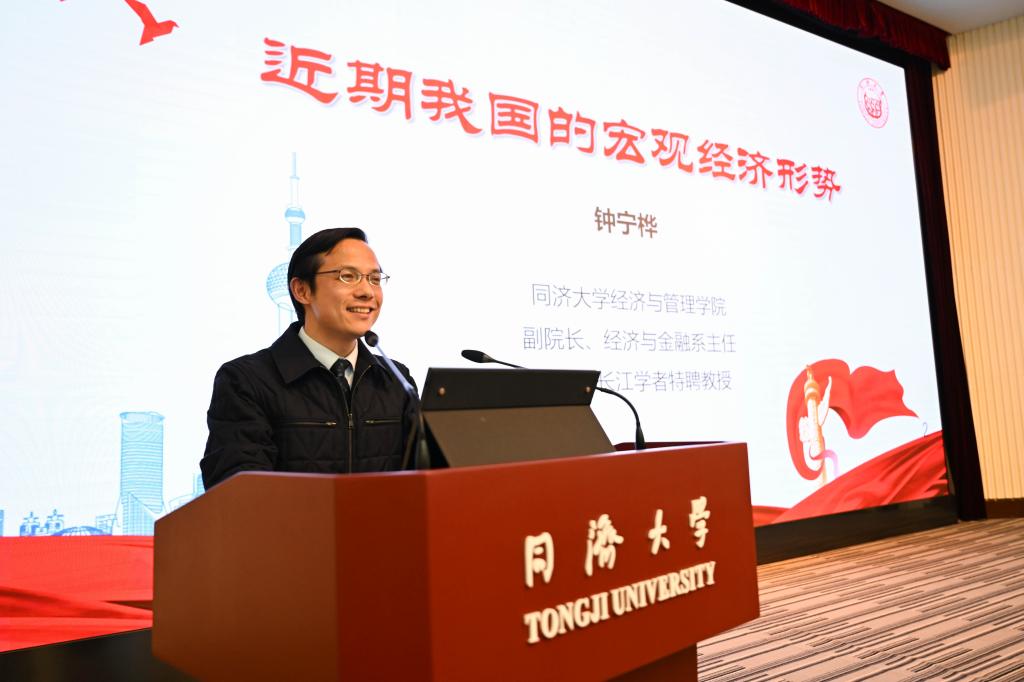 经济与管理学院钟宁桦教授讲授了近期我国宏观经济形势,鼓励同学们把握经济结构优化带来的新机遇,敢于在未知的新兴领域探索,为我国实现高质量发展贡献力量。