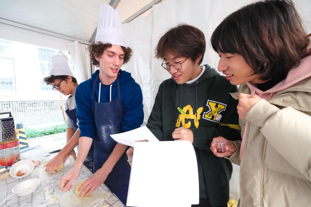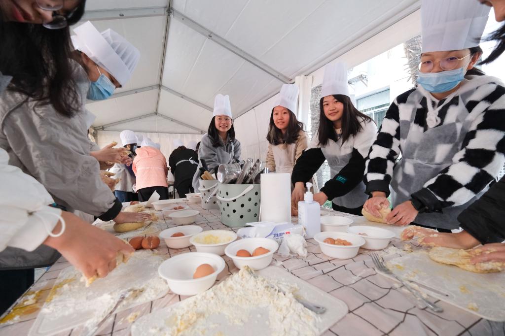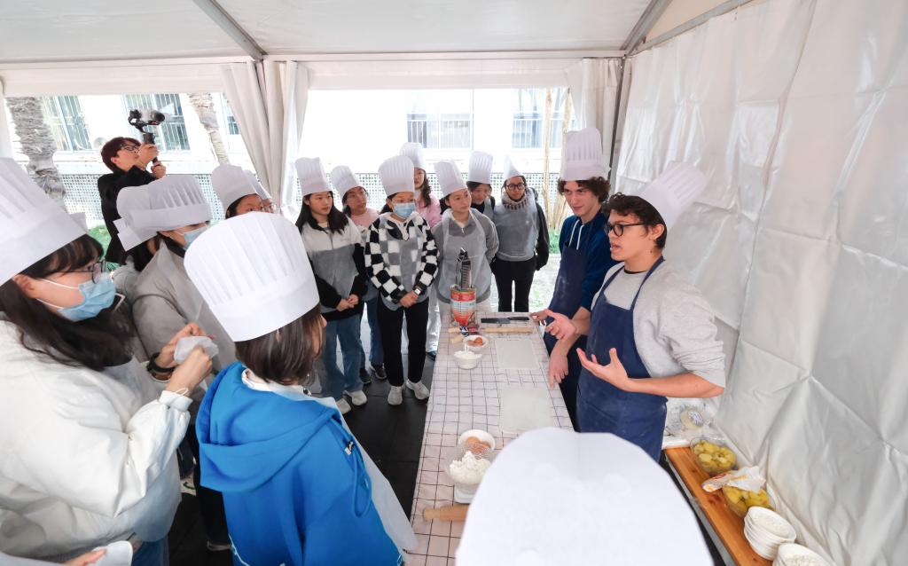美食摊位前,同样人头攒动。来自意大利的留学生们带领大家现场制作意大利传统面食Gnocchi、Pasta和特色点心Chocolate Salame。同学们还在现场品尝到了正宗的Barilla意大利面、Incap糖果和点心、Meseta咖啡、葡萄酒等美味,感受舌尖上的意大利。