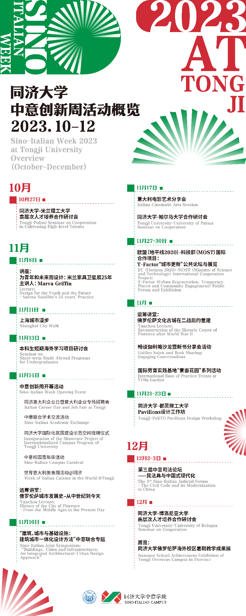 中外师生共同设计中意系列品牌文创作品;依托专业课题研究和劳动教育课程进行景观建造,提升运筹楼展示空间;通过中意高校研讨交流、中意专家讲座、中意文化工作坊、海外教学成果展览展示等形式,组建协同创新的中外师生社群,提升学校的国际化形象和传播力。