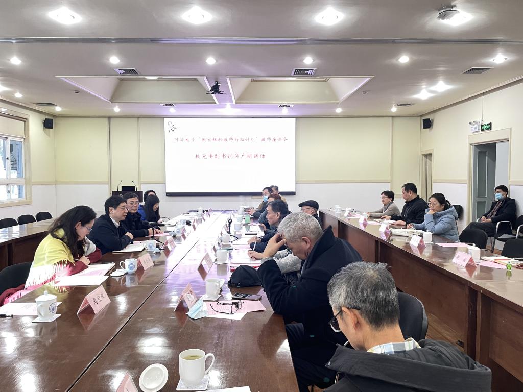 1月23日,为贯彻落实教育部等十部门印发的《国家银龄教师行动计划》通知精神,总结学校银龄教师支援西部计划实施情况并部署下一阶段工作,学校召开银龄教师座谈会。校党委副书记吴广明出席会议并讲话,银龄教师陶伟忠、许强、胡春风、庞徐薇、朱仲良、陈立生、刘堂晏、姜建华,离退休工作办公室、党委组织部、党委宣传部和相关学院负责人参加会议。