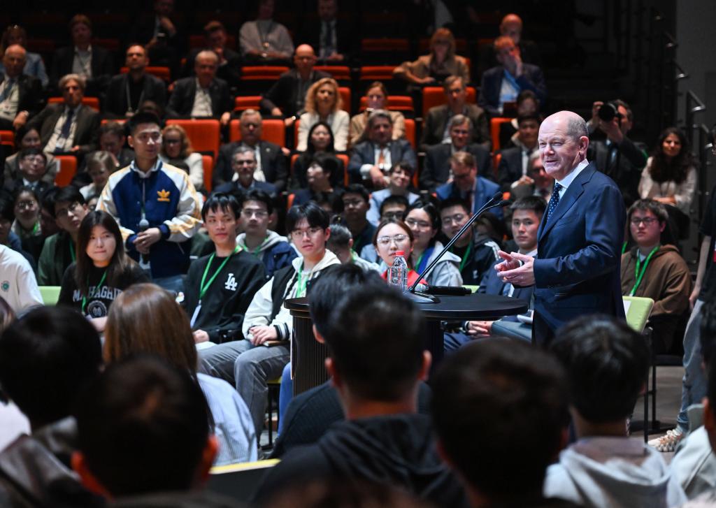 朔尔茨总理感谢同济大学的邀请,表示非常高兴能第二次来到同济大学,再次与同济青年学子交流,一起讨论全人类共同关心的话题,共同展望中德两国和世界的未来发展。