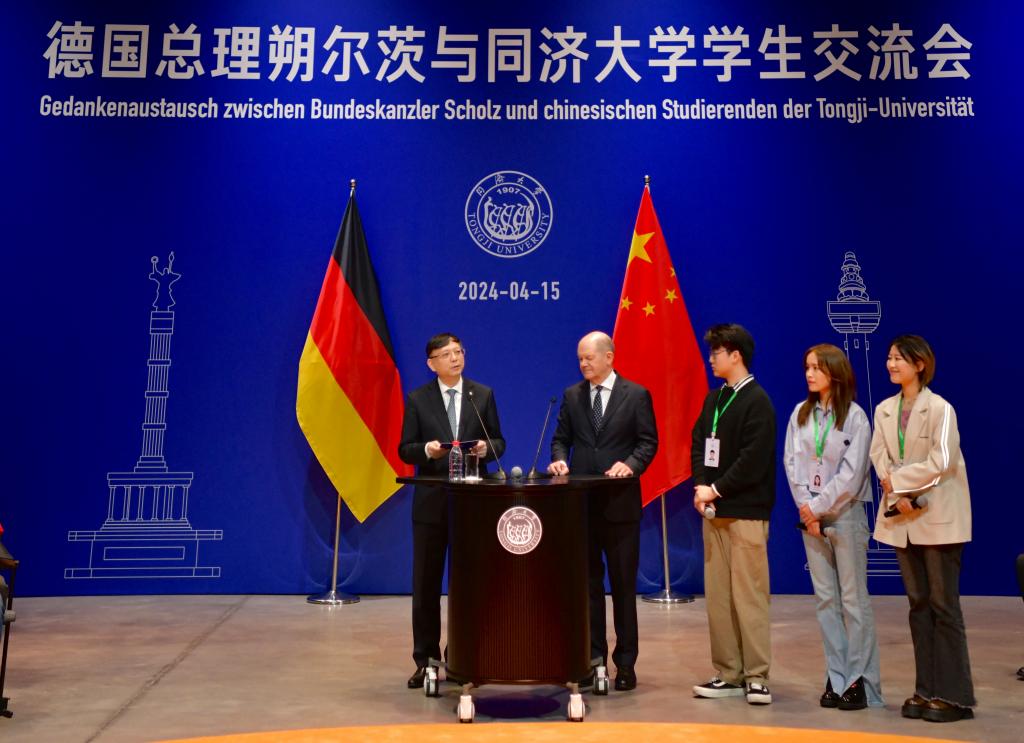 今天(4月15日),在华访问的德国总理奥拉夫·朔尔茨(Olaf Scholz)携代表团100余人访问同济大学,与近160名同济学子对话交流,寄望中德两国美好未来。中国驻德国大使吴恳和德国驻华大使傅融,以及来自西门子、科思创、宝马、奔驰等公司高管一同出席活动。