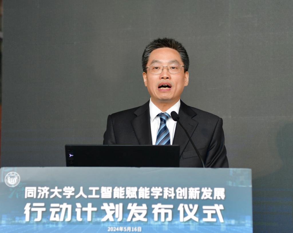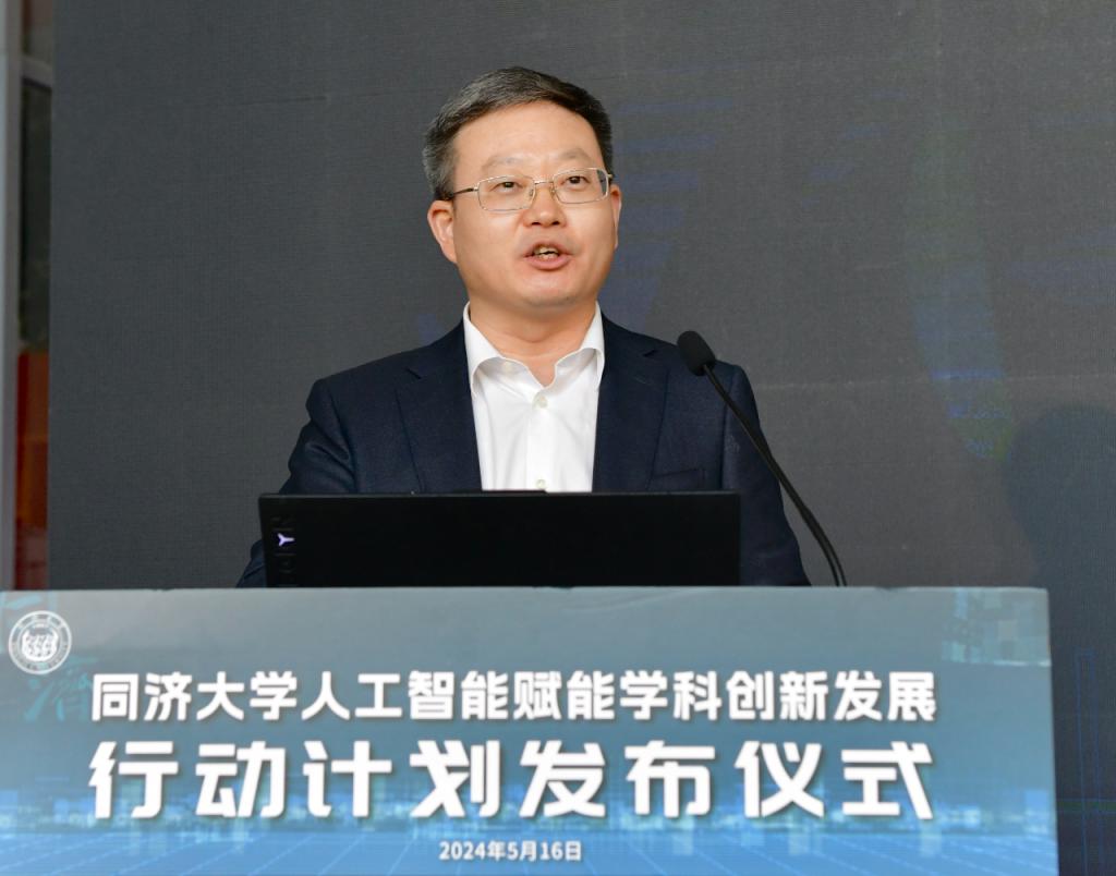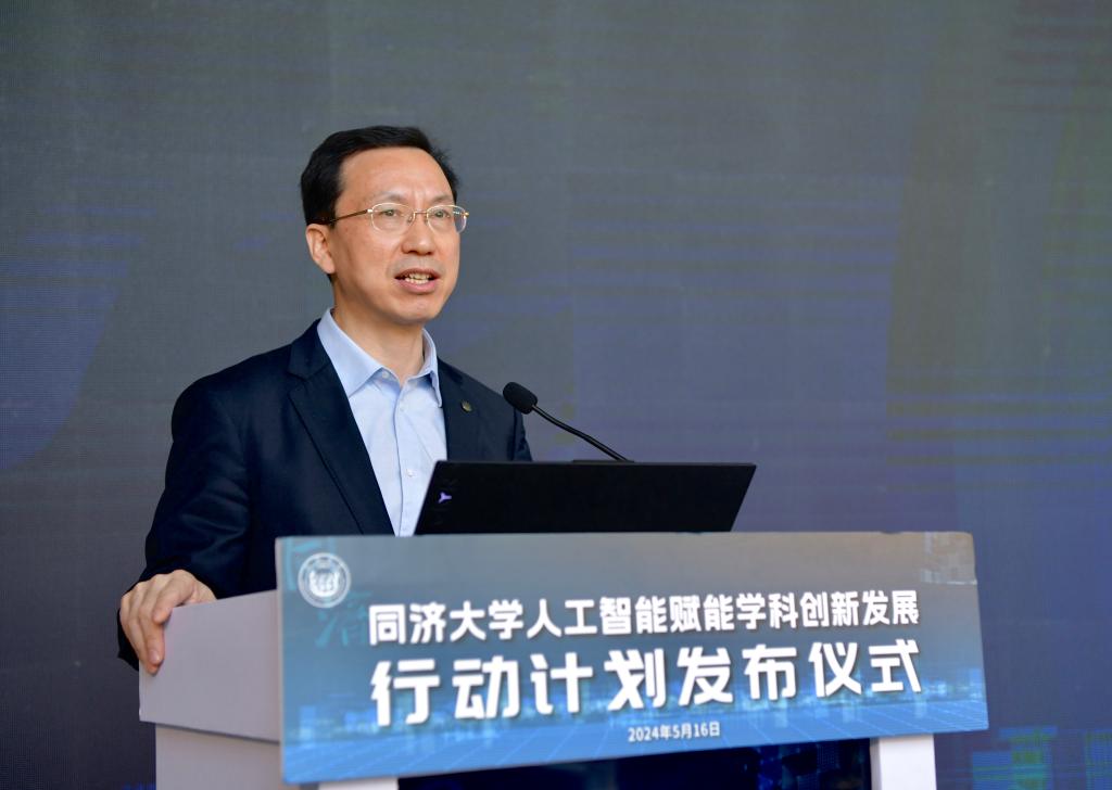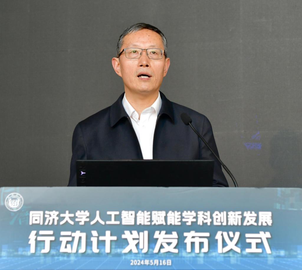 发布仪式上,同济大学校长、中国工程院院士郑庆华介绍了《行动计划》。他说,人工智能已成为21世纪最具挑战性、最具催化力、最具赋能特征的战略性技术,是发展新质生产力的重要引擎。同济大学面向时代急需、国家急需,勇担教育强国使命,把“人工智能+”作为教育发展的战略任务,以学校第十二次党代会确立的“巩固、调整、转型、提升”为工作主线,以数智化、绿色化、融合化“三化”作为促进学科转型高质量发展的路径方向,全面探索智能技术赋能教育教学(AI for Education)、科学研究(AI for Science)、工程技术(AI for Engineering)、管理服务(AI for Management)的创新实践,推动学科转型升级高质量发展。