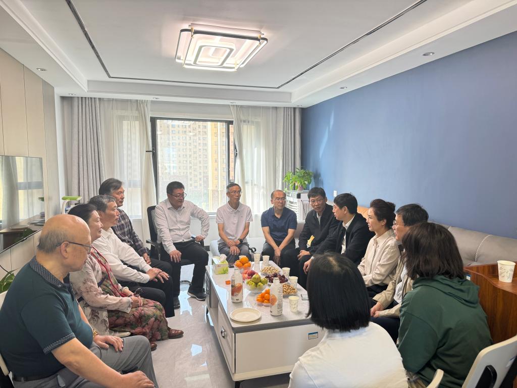 在陶伟忠老师居住的银龄教师公寓,吴广明详细了解银龄教师的生活起居情况,与各位银龄教师亲切交谈,并送上学校慰问金。