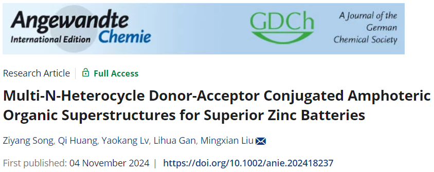 化学科学与工程学院刘明贤团队提出多氮杂环给体-受体自组装有机超结构电池材料新方法,研究成果发表于《德国应用化学》