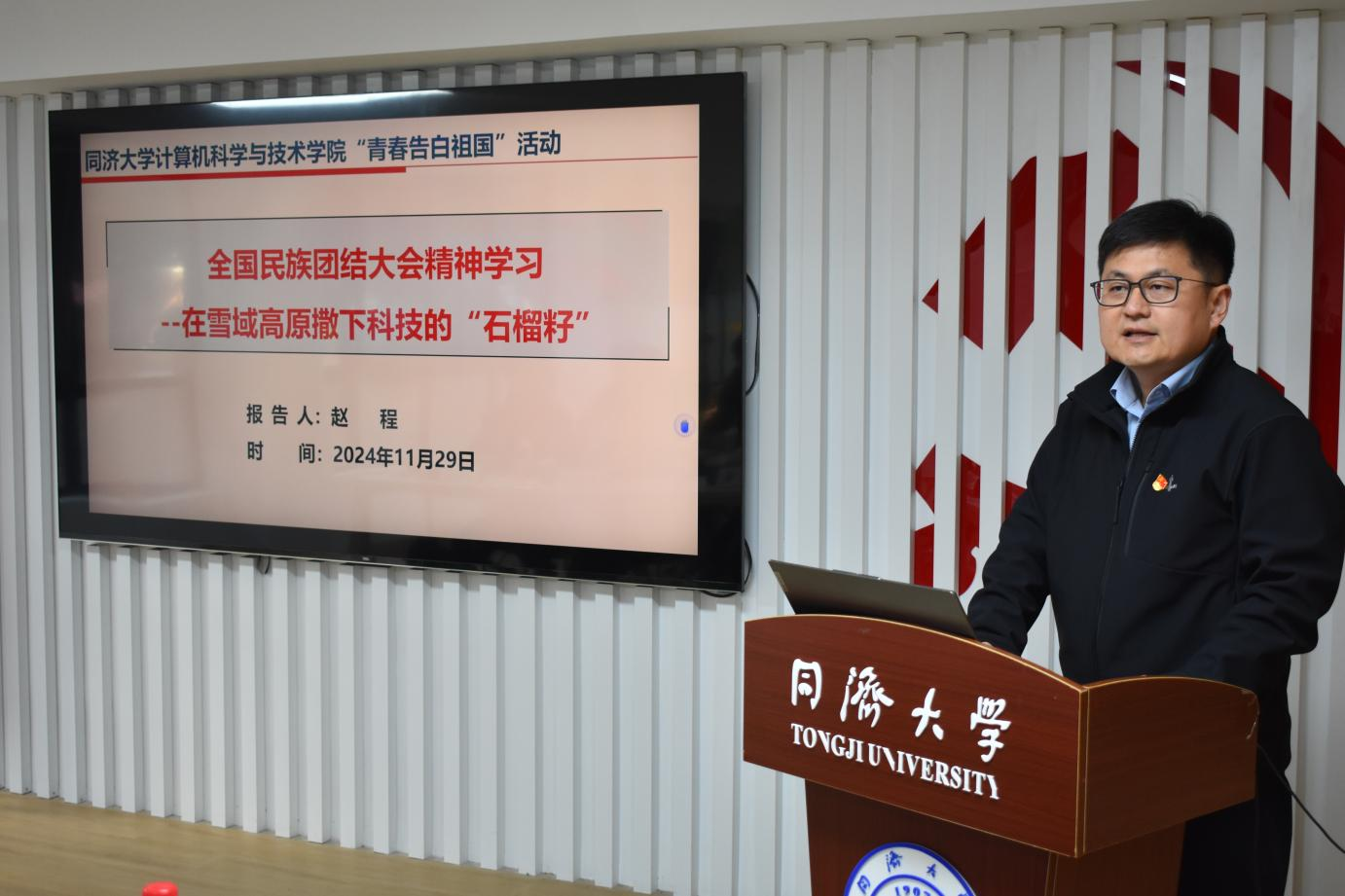 11月29日下午,在嘉定校区“一站式”学生社区协同育人中心,计算机科学与技术学院举办“璀璨筑梦路,奋斗立强国”青春告白祖国专题报告会暨驻楼导师活动。国家卓越工程师学院、校党委统战部、计算机科学与技术学院相关负责人出席活动。
