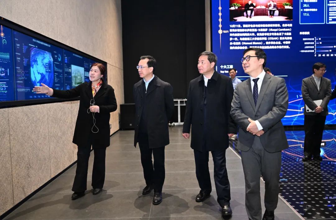 签约前,在郑庆华陪同下,柯瑞文一行参观了设于同济大学中法中心的智慧校园辅助决策“驾驶舱”。