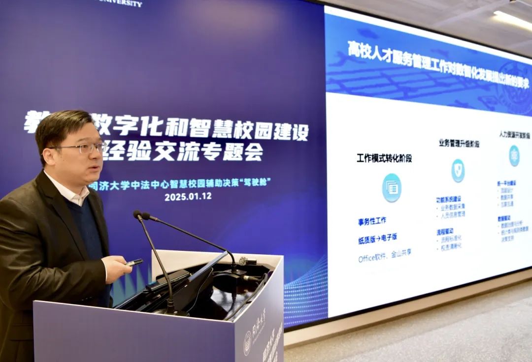 1月12日,同济大学教育数字化和智慧校园建设经验交流专题会在位于四平路校区中法中心的智慧校园辅助决策“驾驶舱”举行,分享经验成果,共同探索教育数字化和智慧校园建设未来发展新路径。