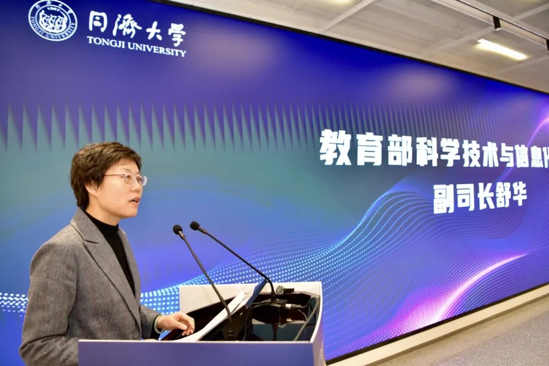 舒华致辞表示,同济大学高度重视教育数字化工作,围绕智慧校园建设、人工智能赋能学科发展等方面,开展了一系列卓有成效的探索和实践,取得了显著成绩。2025年是落实教育强国建设规划纲要的关键之年,也开启了教育数字化战略的新三年,希望同济大学等高校能够发挥示范引领作用,提高对教育数字化的认识,强化数智赋能,提升教师数字素养,强化网络安全,在教育数字化转型发展中走在前列、做好表率,为建成教育强国、支撑中国式现代化作出新的更大贡献。