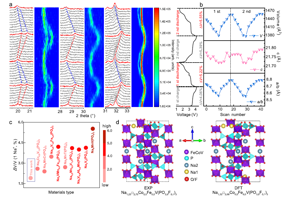 3月25日,同济大学材料科学与工程学院马吉伟教授团队在《自然·通讯》(Nature Communications)在线发表了题为“Activating fast and reversible sodium storage in NASICON cationic defect sites through fluorine doping”的研究论文。该研究通过氟掺杂构造缺陷,制备了一种具有钠缺陷的NASICON聚阴离子正极材料。该正极材料实现了高达151 mAh/g的可逆比容量,并能够在5000 mA/g的大电流下进行稳定长循环。此外,该论文采用了先进的原位同步辐射以及原位X射线衍射表征技术揭示了氟掺杂对材料性能优化的机理,并结合理论计算进行了验证。该方法有望应用于钠离子电池中聚阴离子材料的设计和开发。