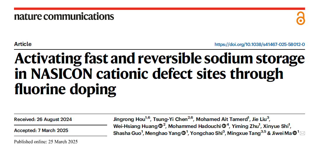 材料科学与工程学院马吉伟团队关于氟掺杂激活缺陷储存钠离子位点的最新研究成果发表于《自然·通讯》