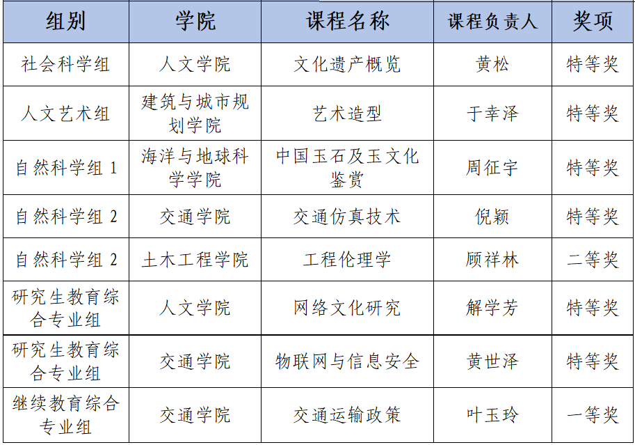 第二届上海市课程思政教学设计展示活动同济大学获奖名单
