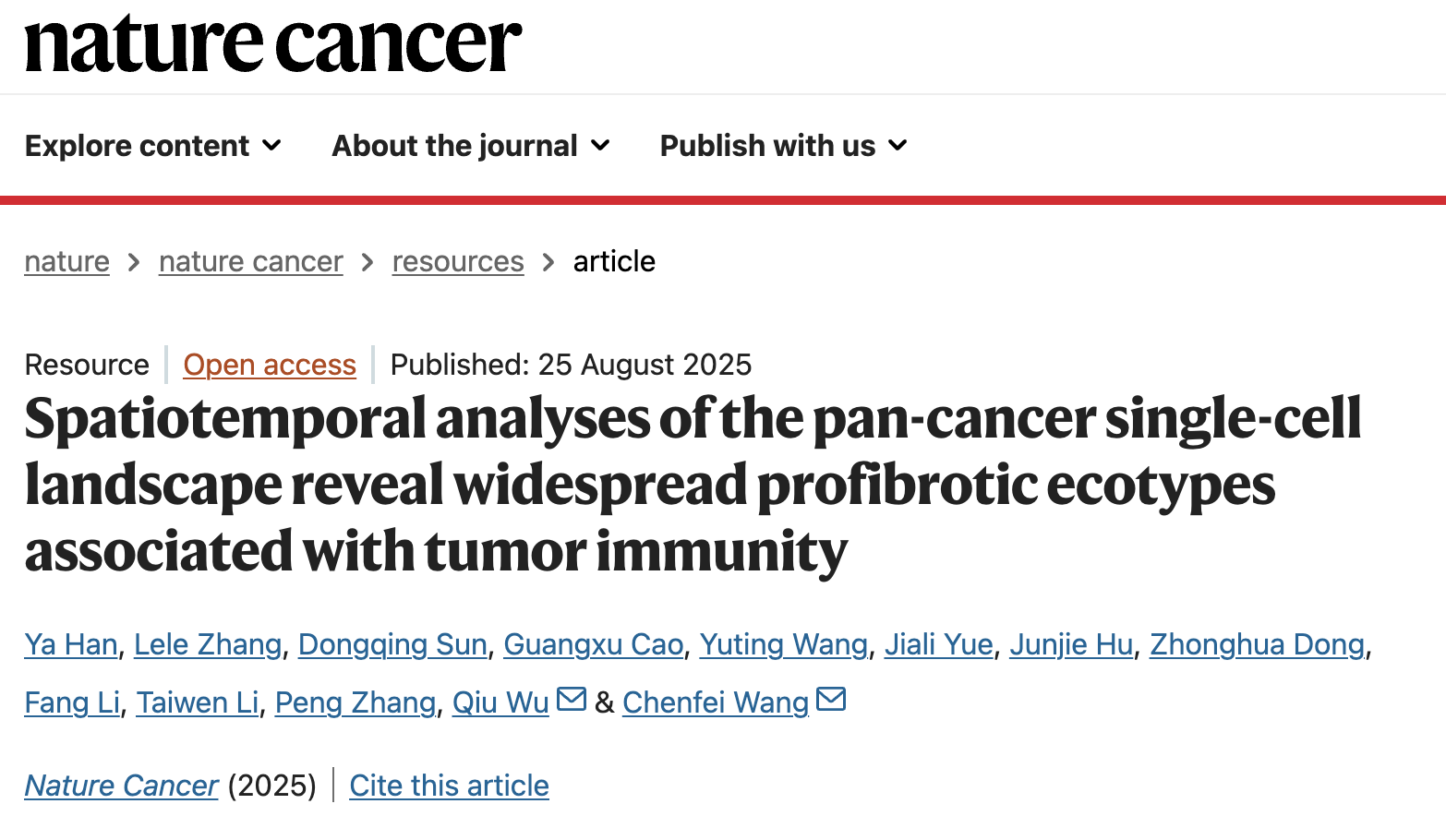 生命科学与技术学院王晨飞团队揭示泛癌中广泛存在促纤维化生态位调控肿瘤免疫,成果发表于《自然肿瘤》
