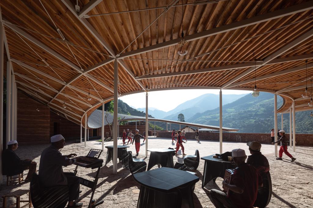 “永安之心”采用夯土与回收材料建造,兼具议事、放映、共餐、储藏等功能,是面向全村开放的共享空间平台。空间策略融合屋顶雨水收集、通风隔热与弹性围合等手段,以最小能耗适应极端气候,重构村落日常生活的生态支点。2022年,“永安之心”荣获Dezeen Awards设计大奖城镇建筑(Civic Building)奖,是建筑类别11个获奖项目中唯一的中国项目。Dezeen设计奖评审团对中国特色社会主义扶贫事业在贫困山区公共空间的创新营造实践给予了最高评价。