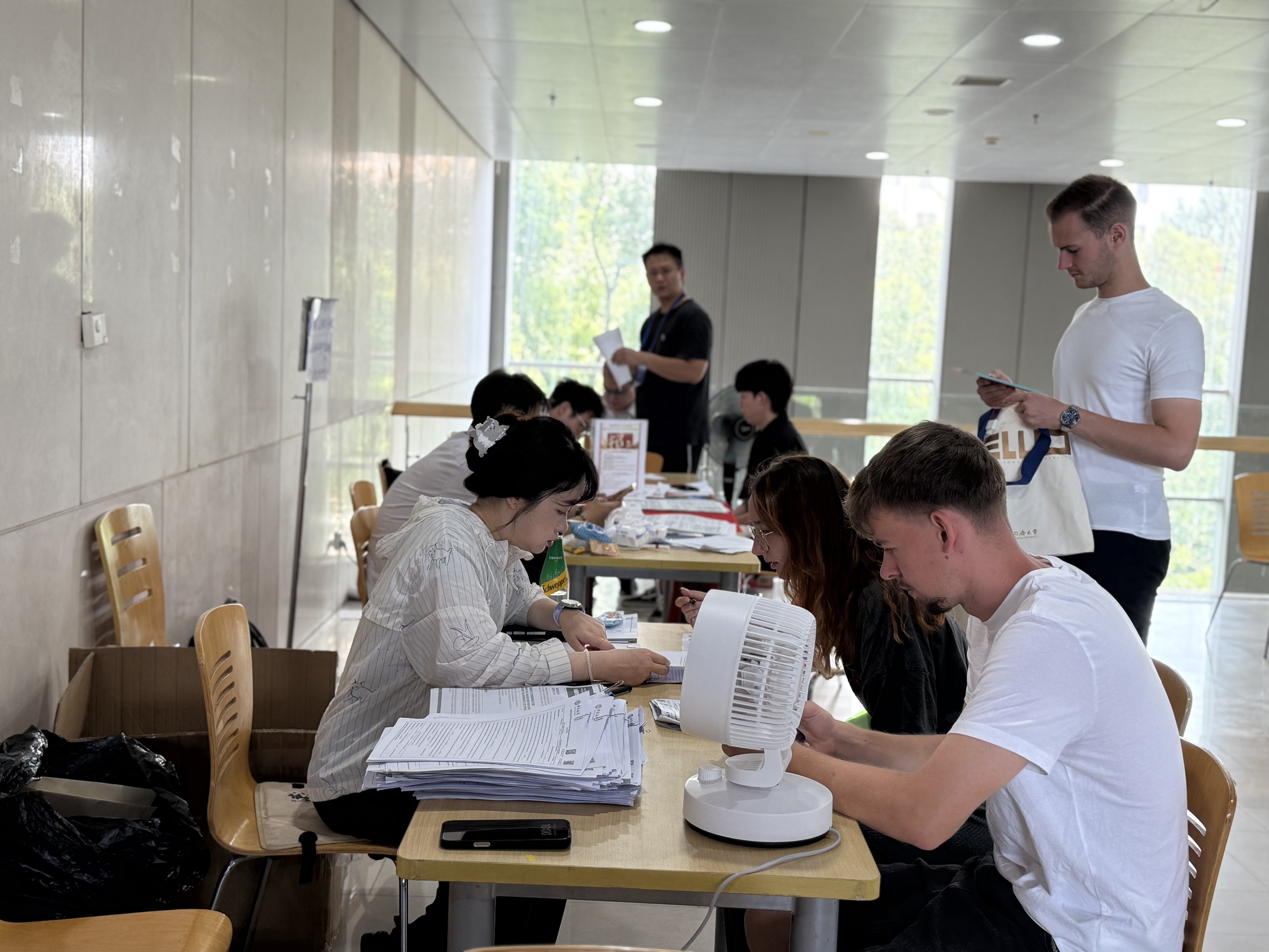 迎新现场,老师与志愿者们热情迎接每一位远道而来的新同学。多语种的引导、贴心的服务、温暖的笑容,帮助初来乍到的国际学生迅速融入新环境。校园里,青春洋溢的笑脸与缤纷多彩的行囊交织在一起,汇聚成一幅多元文化共融的动人图景。今年,国际学生迎新工作不仅注重效率,更强调人文关怀与文化体验。学校全面升级数智化服务流程,让新生能够快速完成注册、体检以及银行卡与校园卡办理。绿色环保理念贯穿始终,无纸化录取与电子化手续已成为新生入学的“第一课”,也体现了同济对可持续发展的承诺。