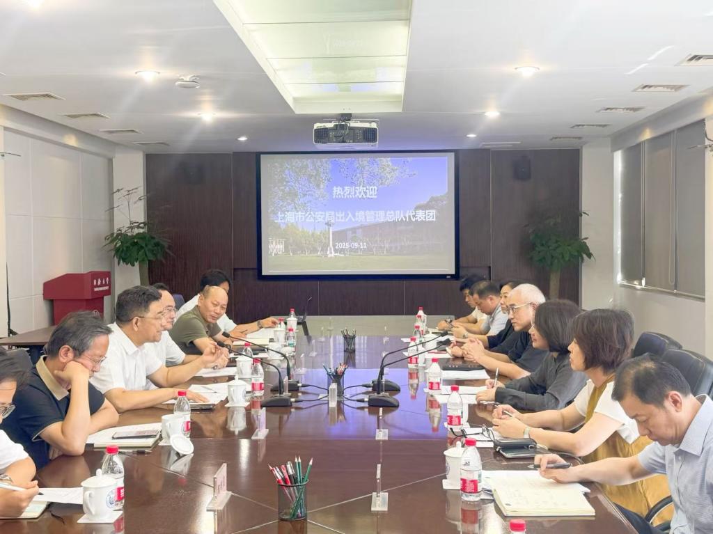 9月11日,上海市公安局出入境管理总队党委书记、总队长邱岭率总队相关部门负责人来访,就深化出入境领域“放管服”改革、服务高校“引才引智”与国际化办学开展专题调研。常务副校长吕培明主持交流并致辞,外事办公室、留学生办公室、港澳台事务办公室、保卫处、后勤管理与保障处、同济后勤产业发展有限公司等单位负责人参加会谈。