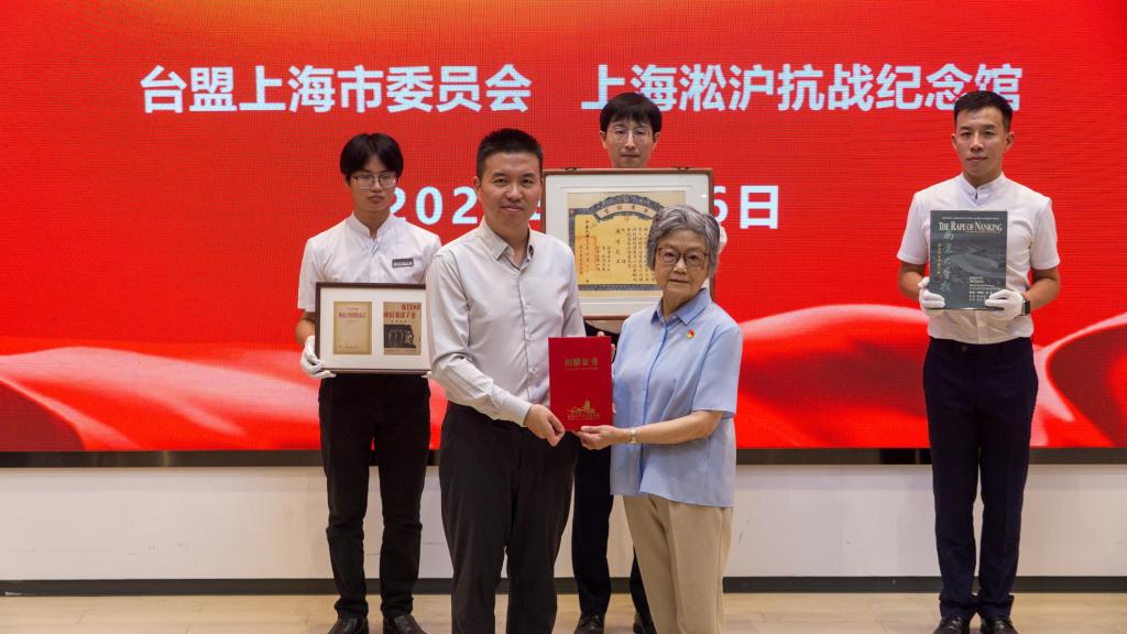 仪式上,石四箴简要介绍了其父石湘涛先生1936年所著《假使日本受了经济封锁》抗日丛书仿制件及其生前所用打字机,其母庞运芝女士1932年参与淞沪抗战救护工作所获得的中国红十字会奖章证书仿制件,以及石湘涛先生著作《今日之日本丛刊——战后日本财阀的复活》仿制件。同时,她还捐赠了其珍藏的美国学者所编著的《南京大屠杀——历史照片中的见证》写真集。