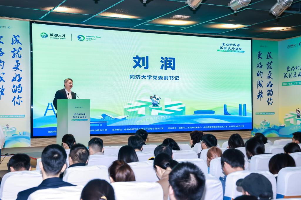 11月26日,由四川省委人才工作领导小组办公室指导,成都市委人才工作领导小组办公室主办,成都市人才发展促进中心、成都市龙泉驿区委人才工作领导小组办公室承办的2025“蓉漂人才荟”同济大学专场活动在四平路校区举行。活动以“更好的成都,成就更好的你”为主题,围绕加快推动国家吸引集聚人才平台建设,诚邀英才选择成都干事创业,共享城市机遇、共创美好未来。同济大学党委副书记刘润,成都市政协副主席甘华田,成都市委组织部部务委员、市人才发展促进中心副主任阳夷,成都市龙泉驿区委常委、组织部部长余雅宾出席活动。学生就业指导中心、校团委、建筑与城市规划学院、土木工程学院、经济与管理学院有关负责人,成都市委人才办、龙泉驿区有关负责人,重点用人单位代表及高校青年人才代表等参加活动。
