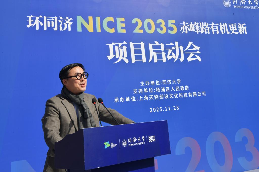 郑庆华表示,NICE2035赤峰路有机更新项目启动,是区校积极践行人民城市重要理念、响应上海城市更新行动的又一具体举措。这一项目不仅是物理空间的改造升级,更是面向未来推动大学教育、科技、设计与社区美好生活深度融合的创新实践。希望区校共同努力,把赤峰路片区打造成为一个宜居、宜业、宜创、宜游的未来社区样板,为学校师生创新创业提供实践场域,为全球顶尖创新人才和优质资源搭建集聚高地,持续为“环同济知识经济圈”注入新动能。